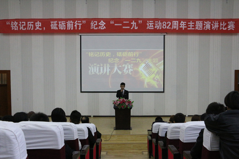為紀(jì)念一二·九學(xué)生愛國運(yùn)動82周年,弘揚(yáng)新時代學(xué)生愛國主義精神,12月8日下午,能源工程系在正德廳舉行了“銘記歷史砥礪前行”主題演講比賽,系上全體師生參加此次活動。