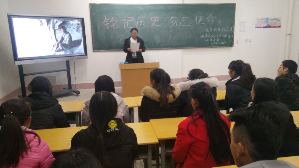 為紀念“12.9”愛國運動82周年,現(xiàn)代農業(yè)技術系團總支積極響應院團委號召,于12月8日至10日在各班團支部開展以“銘記歷史 勿忘使命”主題團日活動。