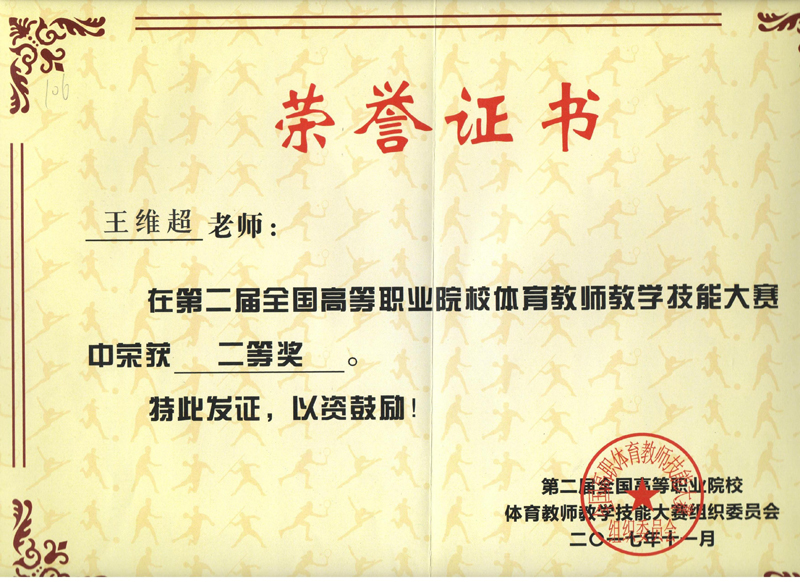 2017年11月27日至30日,人文藝術教育系王維超老師,代表我省參加了由教育部高等學校體育指導委員會在蘇州職業(yè)大學舉辦的,第二屆全國高等職業(yè)院校體育教師技能大賽,經(jīng)過激烈角逐最終榮獲二等獎。