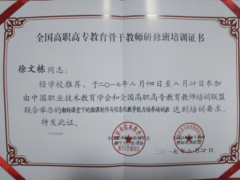 優(yōu)質(zhì)校建設(shè)之高校教師教學(xué)能力、信息技術(shù)與專業(yè)素養(yǎng)提升高級(jí)培訓(xùn)班總結(jié)及證書(shū)——徐文棟