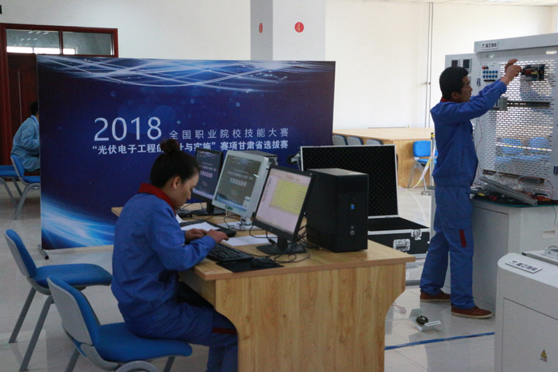 414,2018年全國職業(yè)院校技能大賽“光伏電子工程的設(shè)計與實施”賽項甘肅省選拔賽甘肅林業(yè)職業(yè)技術(shù)學(xué)院舉行。此次大賽有蘭州石化職業(yè)技術(shù)學(xué)院、甘肅林業(yè)職業(yè)技術(shù)學(xué)院、武威職業(yè)學(xué)院等6所院校的11支代表隊33名選手參加。由我院能源工程系黃述杰、張國祥老師指導(dǎo),田丹、馬亞飛、陳雪花三名學(xué)生組成的武威職業(yè)學(xué)院一隊榮獲二等獎。