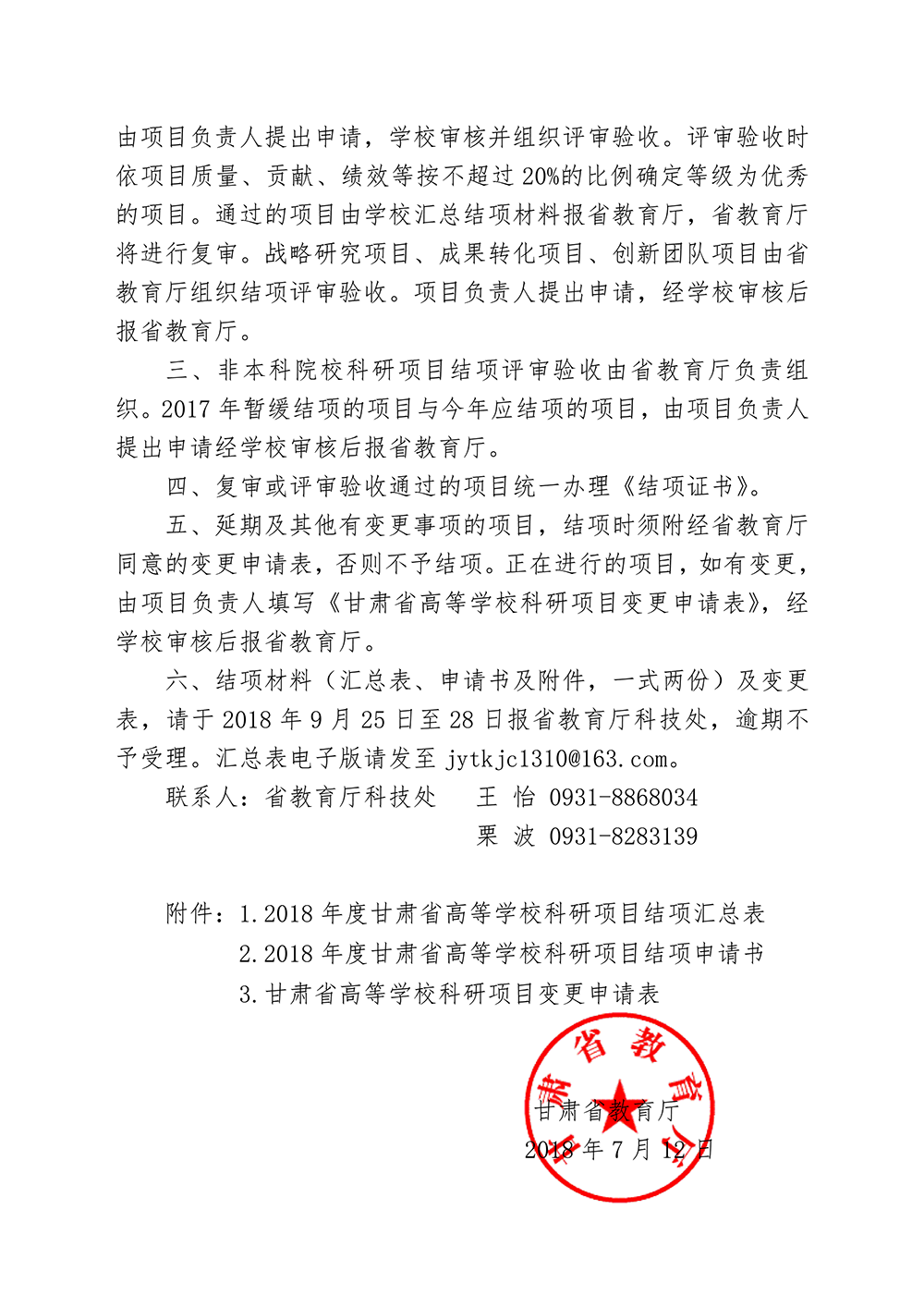 甘肅省教育廳關于對2018年度甘肅省高等學??蒲许椖窟M行結項的通知(附件).doc