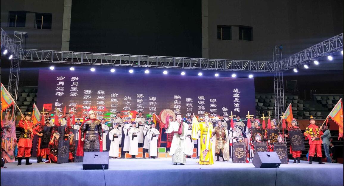 學院推選的節(jié)目《金戈鐵馬入夢涼州》結(jié)合戲曲、舞蹈、器樂及涼州攻鼓子等形式誦讀王昌齡《從軍行》其一、四、五及王翰《涼州詞》、武建東《七絕 涼州攻鼓子》和武威作家楊玉鵬創(chuàng)作的《這就是涼州 這就是武威》,現(xiàn)場表現(xiàn)較好,得到了評委和觀眾的一致認可,在20支參賽隊中榮獲第一名,充分展現(xiàn)了我院師生良好的精神風貌。