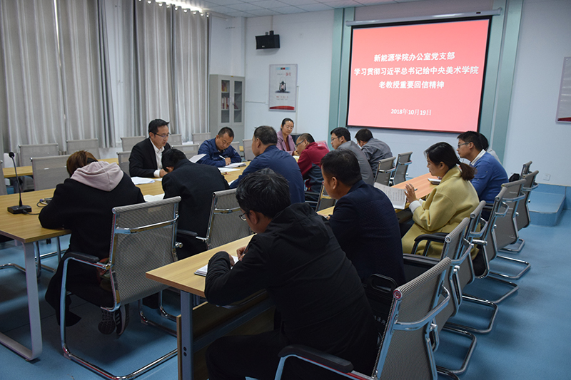 10月19日下午,新能源學院辦公室黨支部在黨員活動室召開學習貫徹習近平總書記給中央美術學院老教授重要回信精神專題會議。會議由黨支部書記任陶主持,支部全體黨員參加了此次會議。