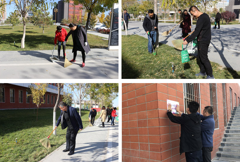 支部全體黨員在大學(xué)生活動中心門口、風(fēng)雨操場及校園馬路清掃落葉和垃圾,并對沿線衛(wèi)生死角進行清理,對不文明行為進行即時勸導(dǎo)。在教學(xué)樓、活動中心、公寓樓、食堂等建筑物的醒目位置張貼20余張“創(chuàng)建文明校園”、“禁止吸煙”等標志。通過開展“創(chuàng)建文明校園”活動,進一步提升我院“創(chuàng)建文明城市”迎檢和“創(chuàng)建文明校園”活動效果。