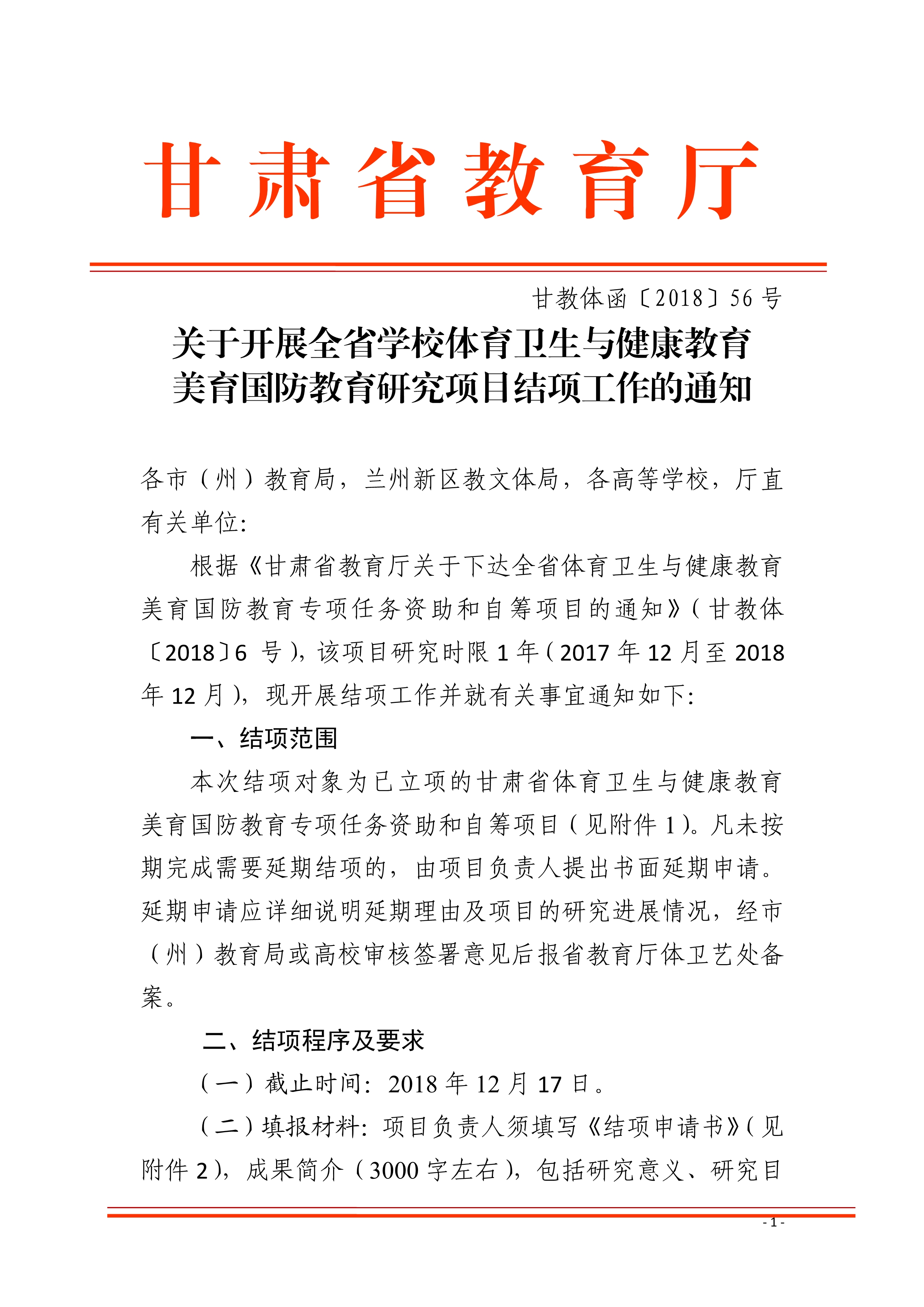 轉(zhuǎn)發(fā)關(guān)于開展全省學(xué)校體育衛(wèi)生與健康教育__美育國(guó)防教育研究項(xiàng)目結(jié)項(xiàng)工作的通知