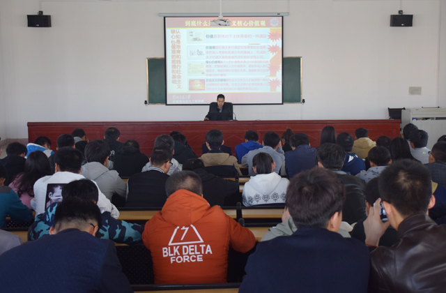翟存祥從社會(huì)主義核心價(jià)值觀的時(shí)代背景、社會(huì)主義核心價(jià)值觀的頂層設(shè)計(jì)、核心價(jià)值觀與核心價(jià)值體系的關(guān)系、社會(huì)主義核心價(jià)值觀的系統(tǒng)培育、社會(huì)主義核心價(jià)值觀的全面踐行等五個(gè)方面,分析了中國共產(chǎn)黨價(jià)值取向的發(fā)展歷程、培育和踐行社會(huì)主義核心價(jià)值觀的重要性和迫切性,培育和踐行社會(huì)主義核心價(jià)值觀對實(shí)現(xiàn)中國夢的重要現(xiàn)實(shí)意義和深遠(yuǎn)歷史意義,以及培育和踐行社會(huì)主義核心價(jià)值觀的措施等問題,并對為什么要培育和踐行、怎么培育和踐行作了系統(tǒng)和精彩的解讀。翟存祥指出,十八大報(bào)告將社會(huì)主義核心價(jià)值觀凝練為24個(gè)字:“富強(qiáng)、民主、文明、和諧;自由、平等、公正、法治;愛國、敬業(yè)、誠信、友善”,從國家、社會(huì)、個(gè)人三個(gè)層面,簡單扼要、簡約樸實(shí)、簡潔通俗地提出了社會(huì)主義核心價(jià)值觀的新表達(dá),也為當(dāng)今中國社會(huì)的核心價(jià)值觀構(gòu)建提出了新要求。社會(huì)主義核心價(jià)值觀既有理論的延續(xù)性,又有現(xiàn)實(shí)的針對性;既有目標(biāo)追求,又有價(jià)值導(dǎo)向,還有行為準(zhǔn)則,是人心所愿、眾望所歸。翟存祥結(jié)合學(xué)院發(fā)展實(shí)際,要求學(xué)生黨員及班團(tuán)干部從現(xiàn)在做起,從自己做起,努力向上,踐行社會(huì)主義核心價(jià)值觀,追求有信念,有夢想,有奮斗,有奉獻(xiàn)的人生,讓自己的人生更有意義。