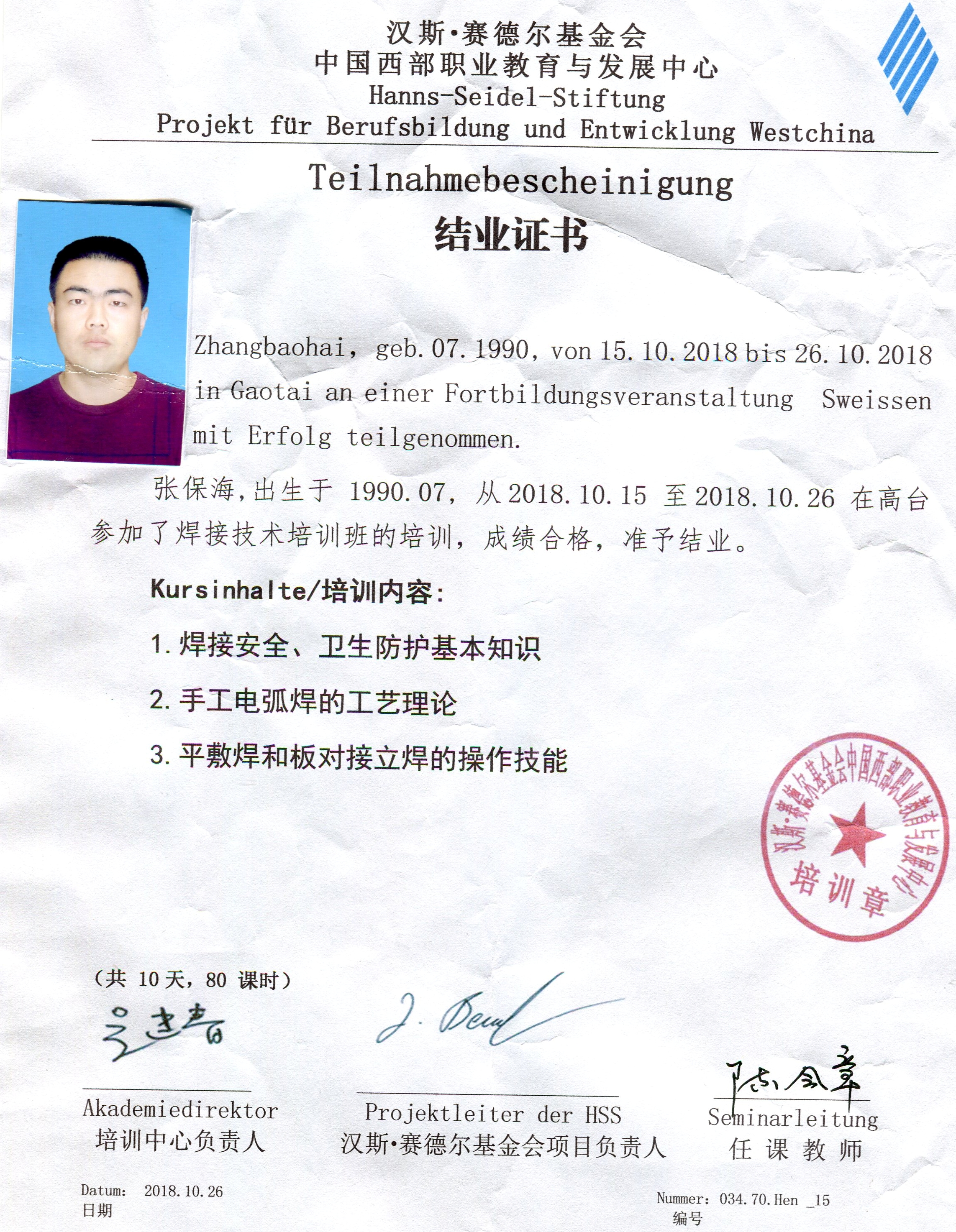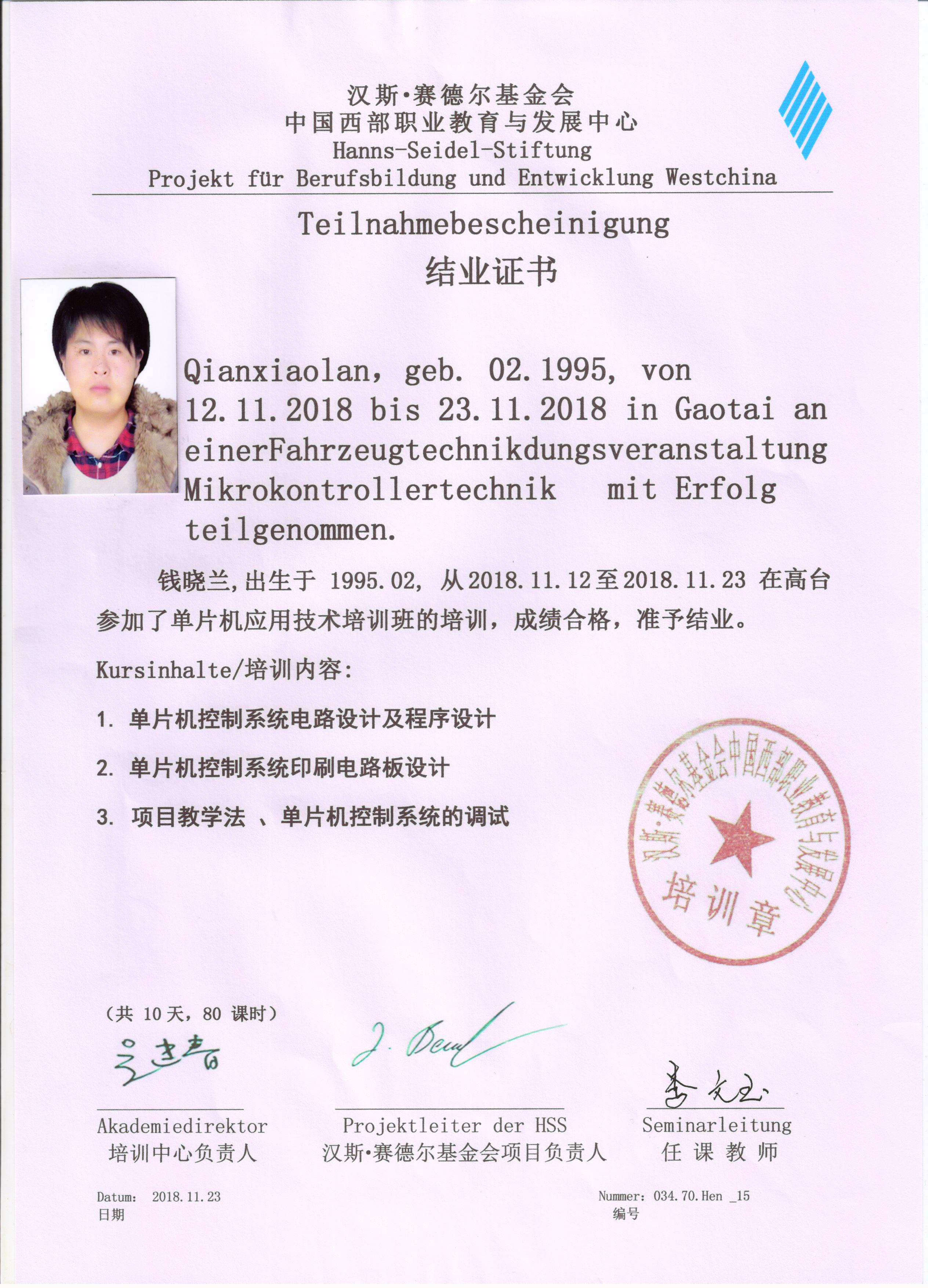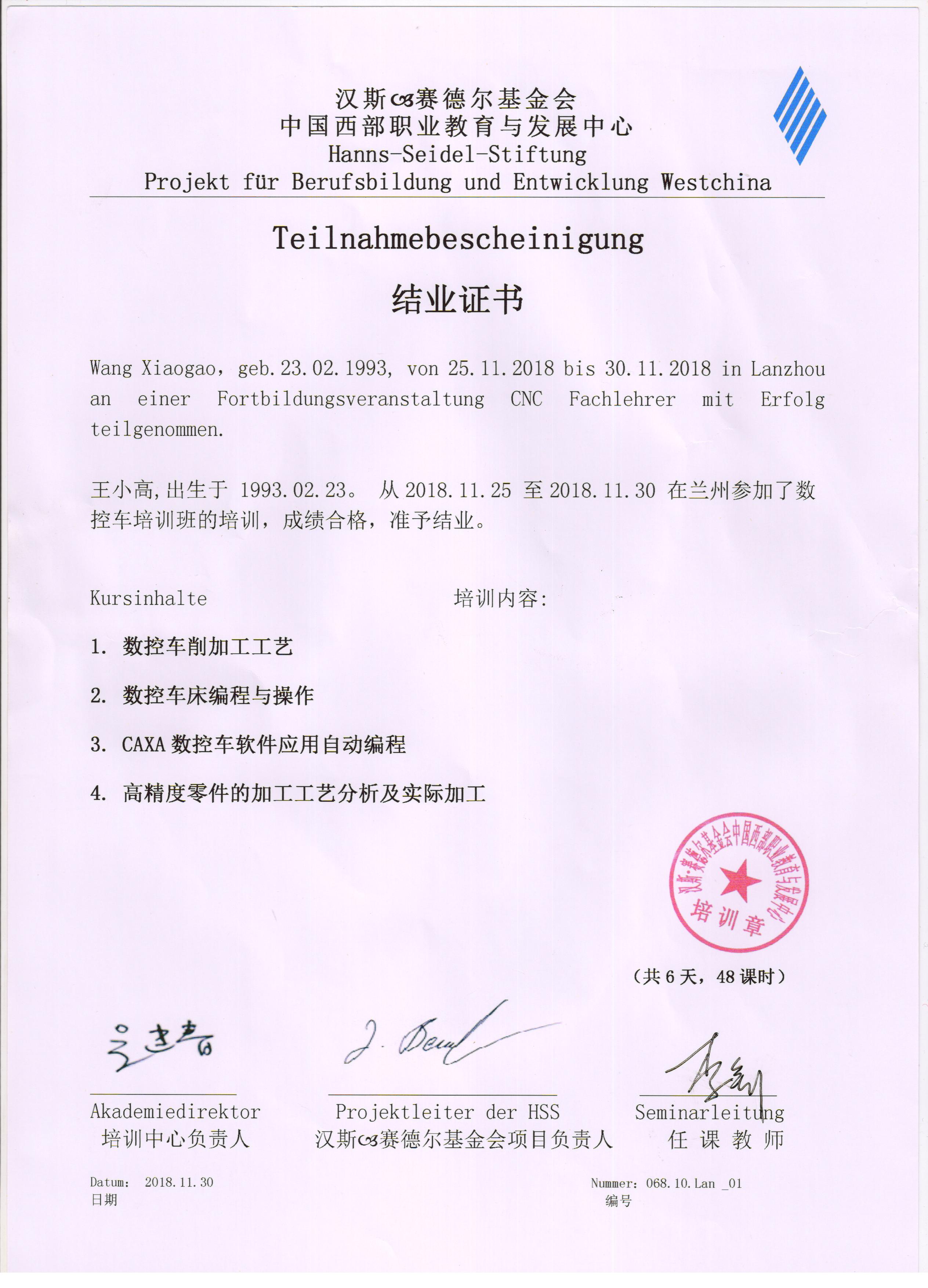 參加德國(guó)漢斯?賽德爾基金會(huì)職業(yè)院校2018年秋季培訓(xùn)