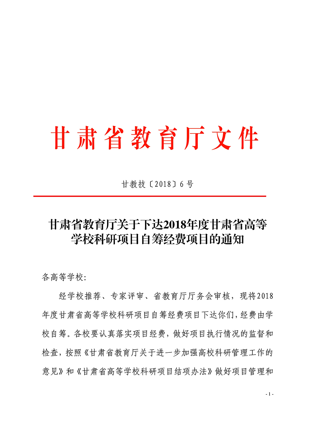 甘肅省教育廳關于下達2018年度甘肅省高等學??蒲许椖孔曰I經費項目的通知