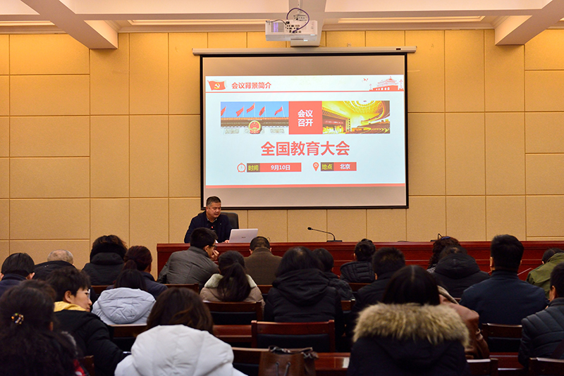 學(xué)工處處長(zhǎng)王守云主講。他以“學(xué)為人師 行為世范 爭(zhēng)做‘四有’老師”為題學(xué)習(xí)了全國(guó)教育大會(huì)召開的背景、重大意義以及習(xí)近平總書記關(guān)于教育的重要論述。宣講會(huì)指出,全國(guó)教育大會(huì)是黨中央在中國(guó)特色社會(huì)主義進(jìn)入新時(shí)代、全面建成小康社會(huì)進(jìn)入決勝階段召開的一次劃時(shí)代、歷史性會(huì)議,時(shí)機(jī)好、規(guī)格高、影響大,在我國(guó)教育發(fā)展史上具有重要里程碑意義;習(xí)近平總書記深刻總結(jié)了黨的十八大以來(lái)我國(guó)教育事業(yè)發(fā)展取得的顯著成就,對(duì)當(dāng)前和今后一個(gè)時(shí)期教育工作作出重大部署,為加快推進(jìn)教育現(xiàn)代化、建設(shè)教育強(qiáng)國(guó)、辦好人民滿意的教育指明了前進(jìn)方向、提供了根本遵循。