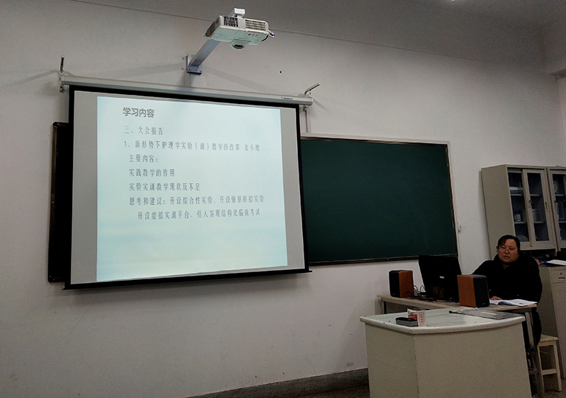 2018年11月20日,護理系組織全系教師在卓行樓308室聽取外出培訓教師匯報會。