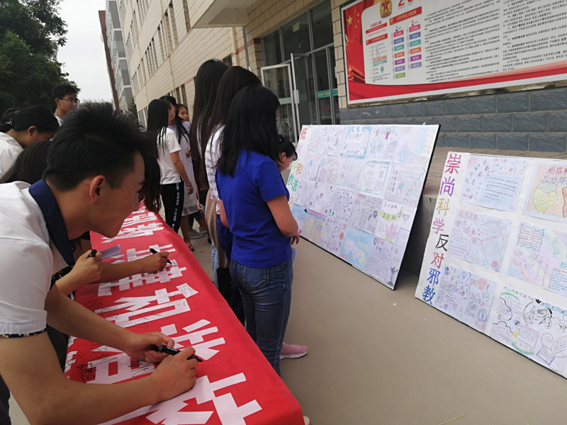 先后舉行“崇尚科學(xué),反對邪教,共建和諧校園”簽名活動(dòng)、開展“崇尚科學(xué),反對邪教”主題班會(huì)。班會(huì)課上,老師為學(xué)生講解什么是邪教組織以及邪教的危害,培養(yǎng)學(xué)生的理性思維,樹立正確的世界觀、人生觀、價(jià)值觀,用科學(xué)的精神自覺抵制邪教。并通過黑板報(bào),張貼反邪教手抄報(bào)等多種活動(dòng)形式,讓師生對邪教危害性有進(jìn)一步地了解,提高全社會(huì)反邪教、樹正氣的意識(shí)。以自己的實(shí)際行動(dòng),積極倡導(dǎo)、傳播科學(xué)思想,普及科學(xué)知識(shí),弘揚(yáng)科學(xué)精神,用科學(xué)的方法辦事,以科學(xué)的態(tài)度對待事物,共同促進(jìn)校園和諧發(fā)展,提高了師生認(rèn)識(shí)和抵制邪教的意識(shí)與能力。