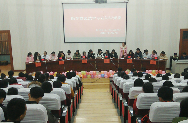 為提高學生對專業(yè)知識的掌握水平,培養(yǎng)主動學習的良好學風,11月27日晚,醫(yī)學技術(shù)與信息管理系在尚德樓正德廳舉行醫(yī)學檢驗技術(shù)專業(yè)知識競賽。系主任楊如松,學院組織人事處副處長魏全民,系全體行政人員,醫(yī)學檢驗技術(shù)教研室主任、任課教師及檢驗專業(yè)全體班主任、學生代表參加本次活動。