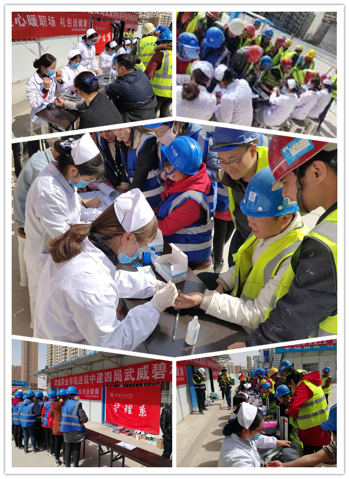 為大力踐行雷鋒精神,營造尊重農(nóng)民工、關(guān)愛農(nóng)民工、幫助農(nóng)民工的良好氛圍,3月23日,武威市疾控中心與武威職業(yè)學院護理系分團委的志愿者們攜手走進武威市中建四局的建設(shè)基地開展關(guān)愛農(nóng)民工志愿服務(wù)活動。此次活動由護理系教師楊杰帶隊。
