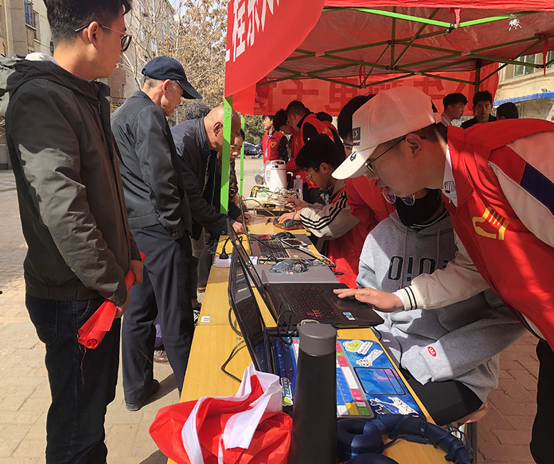 3月23日上午,我系小牛頓電子協(xié)會(huì)和計(jì)算機(jī)協(xié)會(huì)的志愿者們,來(lái)到泰安小區(qū)開(kāi)展了以“發(fā)揚(yáng)雷鋒精神,科技服務(wù)進(jìn)社區(qū)”為主題的家電、電腦義務(wù)維修活動(dòng)。志愿者們對(duì)小區(qū)居民送來(lái)的電水壺、電飯煲、微波爐、影碟機(jī)等家電進(jìn)行了維修,受到了小區(qū)居民的歡迎。志愿者們還不辭辛苦,上門(mén)對(duì)有故障的電腦進(jìn)行重裝系統(tǒng)、更新驅(qū)動(dòng)等服務(wù),師生們認(rèn)真負(fù)責(zé)、一絲不茍的精神得到了居民們的贊許。