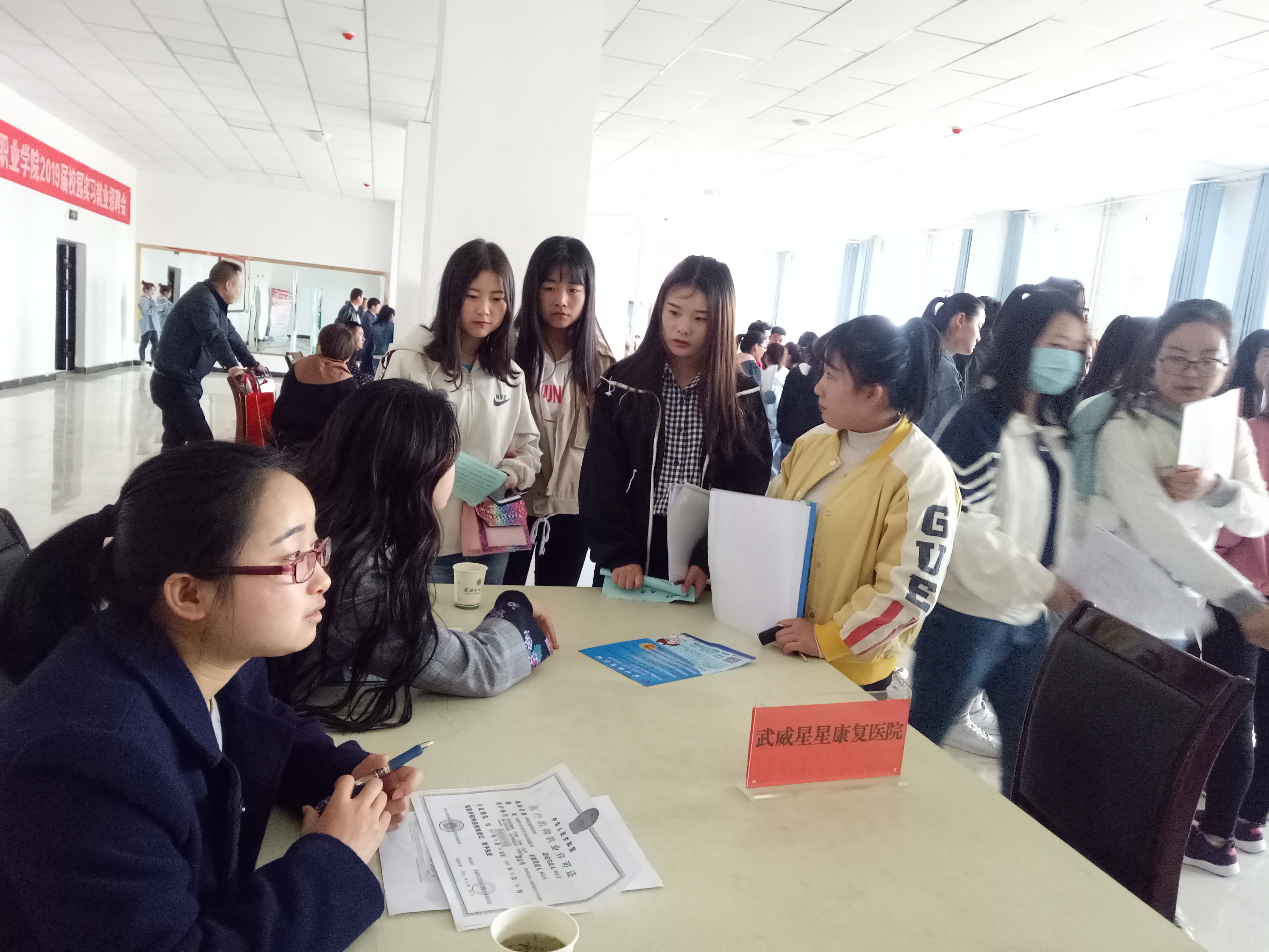 參加本次招聘會(huì)的共有來(lái)自省內(nèi)外醫(yī)療相關(guān)單位10家,包括東莞定遠(yuǎn)陶齒制品有限公司、康泰健美醫(yī)療科技(深圳)有限公司、武威遠(yuǎn)方藥業(yè)、武威市西藝義齒制作有限公司、?武威寶山口腔醫(yī)院、紅山窯衛(wèi)生院、武威星星康復(fù)醫(yī)院等共提供150多個(gè)就業(yè)崗位,基本滿足我系四個(gè)專(zhuān)業(yè)畢業(yè)的就業(yè)需求。