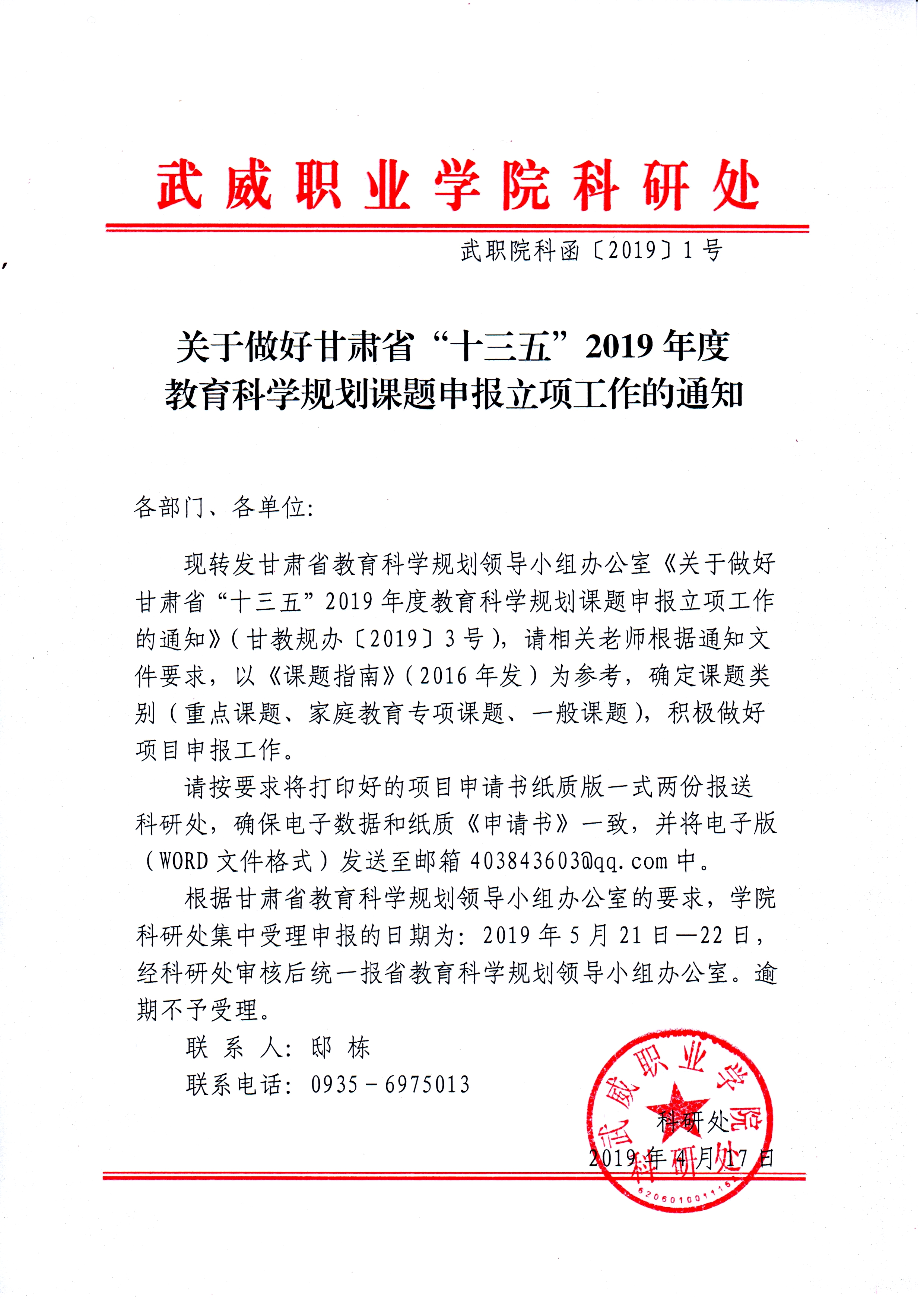 關(guān)于做好甘肅省“十三五”2019年度教育科學(xué)規(guī)劃課題申報(bào)立項(xiàng)工作的通知
