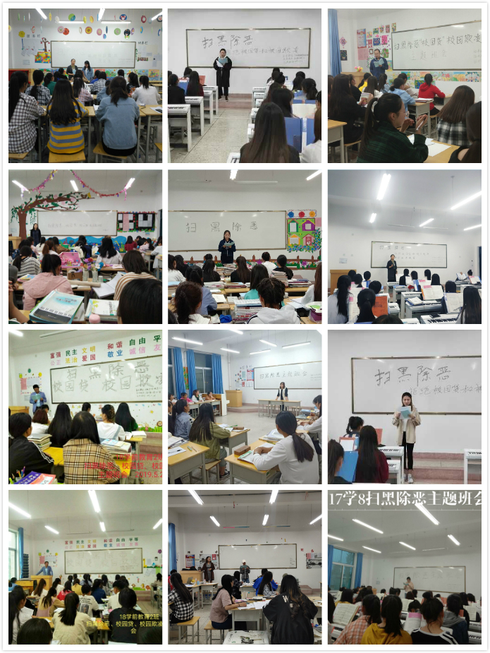 為進(jìn)一步優(yōu)化教育環(huán)境,打造平安和諧校園,配合學(xué)院深入開(kāi)展“掃黑除惡”專項(xiàng)斗爭(zhēng),根據(jù)5月20日人文藝術(shù)教育系“掃黑除惡”專項(xiàng)斗爭(zhēng)工作會(huì)議的安排,定于5月20日至5月26日為我系“掃黑除惡”主題教育周。