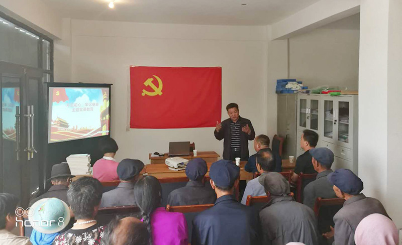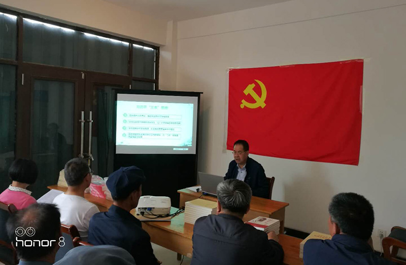 為做好抓黨建促脫貧攻堅(jiān)和加強(qiáng)基層黨組織建設(shè),6月14日,學(xué)院領(lǐng)導(dǎo)、幫扶干部來到對(duì)口幫扶的移民點(diǎn)蘆草溝村、尚家臺(tái)村村委會(huì)為村民黨員講黨課,為蘆草溝村、尚家臺(tái)村黨組織、駐村工作隊(duì)、村民黨員贈(zèng)送黨建書籍和掃黑除惡知識(shí)手冊(cè)。