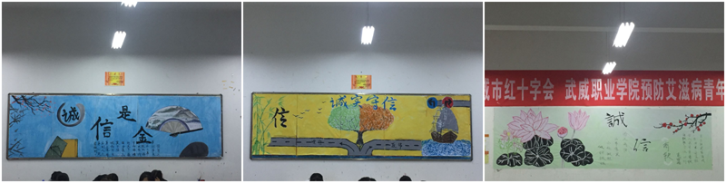 本次“誠(chéng)實(shí)守信”主題教育活動(dòng)包含誠(chéng)實(shí)守信主題班會(huì)、誠(chéng)實(shí)守信主題黑板報(bào)比賽、“誠(chéng)實(shí)守信我想說”微演講、誠(chéng)實(shí)守信主題簽名活動(dòng)四項(xiàng)內(nèi)容。四項(xiàng)活動(dòng)緊密聯(lián)系,主題鮮明、宣傳了國(guó)家及學(xué)院資助政策,讓誠(chéng)實(shí)守信意識(shí)深入到每一位學(xué)生心中,激勵(lì)同學(xué)們做一個(gè)具有正確三觀、德智體美勞全面發(fā)展的社會(huì)主義建設(shè)者和接班人。
