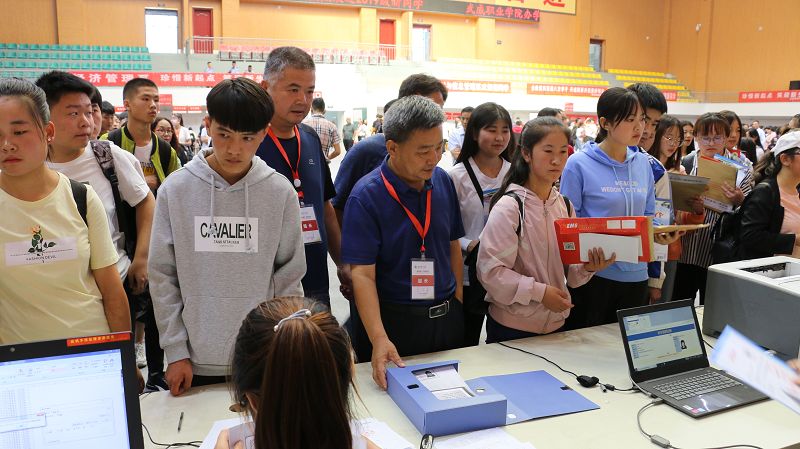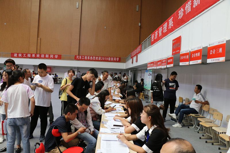 學(xué)院安排專車前往武威火車站、汽車站,為新生及家長(zhǎng)提供全天候接站服務(wù),并為送行家長(zhǎng)專設(shè)了休息區(qū)。安保人員指揮車輛有序停放,保障安全有序的校園環(huán)境。工作人員引導(dǎo)新生辦理入校手續(xù),報(bào)到、繳費(fèi)、入班、物品發(fā)放等各個(gè)環(huán)節(jié)有條不紊、高效暢通。體育館的電子屏上不斷播放學(xué)院宣傳片、大型公益短片,增強(qiáng)了新生及家長(zhǎng)對(duì)學(xué)院的了解、認(rèn)可和熱愛(ài)。為幫助家庭經(jīng)濟(jì)困難學(xué)生順利入學(xué),學(xué)院還設(shè)立了“綠色通道”服務(wù)點(diǎn),為家庭經(jīng)濟(jì)困難學(xué)生辦理緩交(減免)學(xué)費(fèi)和生源地信用助學(xué)貸款登記手續(xù)。