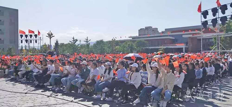 放歌新時代,筑夢新征程。9月29日,由省文化和旅游廳、市政府主辦,市委宣傳部 、省文化館、市文體廣電和旅游局承辦的慶祝中華人民共和國成立70周年甘肅省百姓文化廣場惠民演出走進武威職業(yè)學(xué)院,上演了一場美輪美奐的視聽盛宴,熱烈慶祝新中國成立70周年,謳歌70年來黨領(lǐng)導(dǎo)全國各族人民取得的豐功偉績。