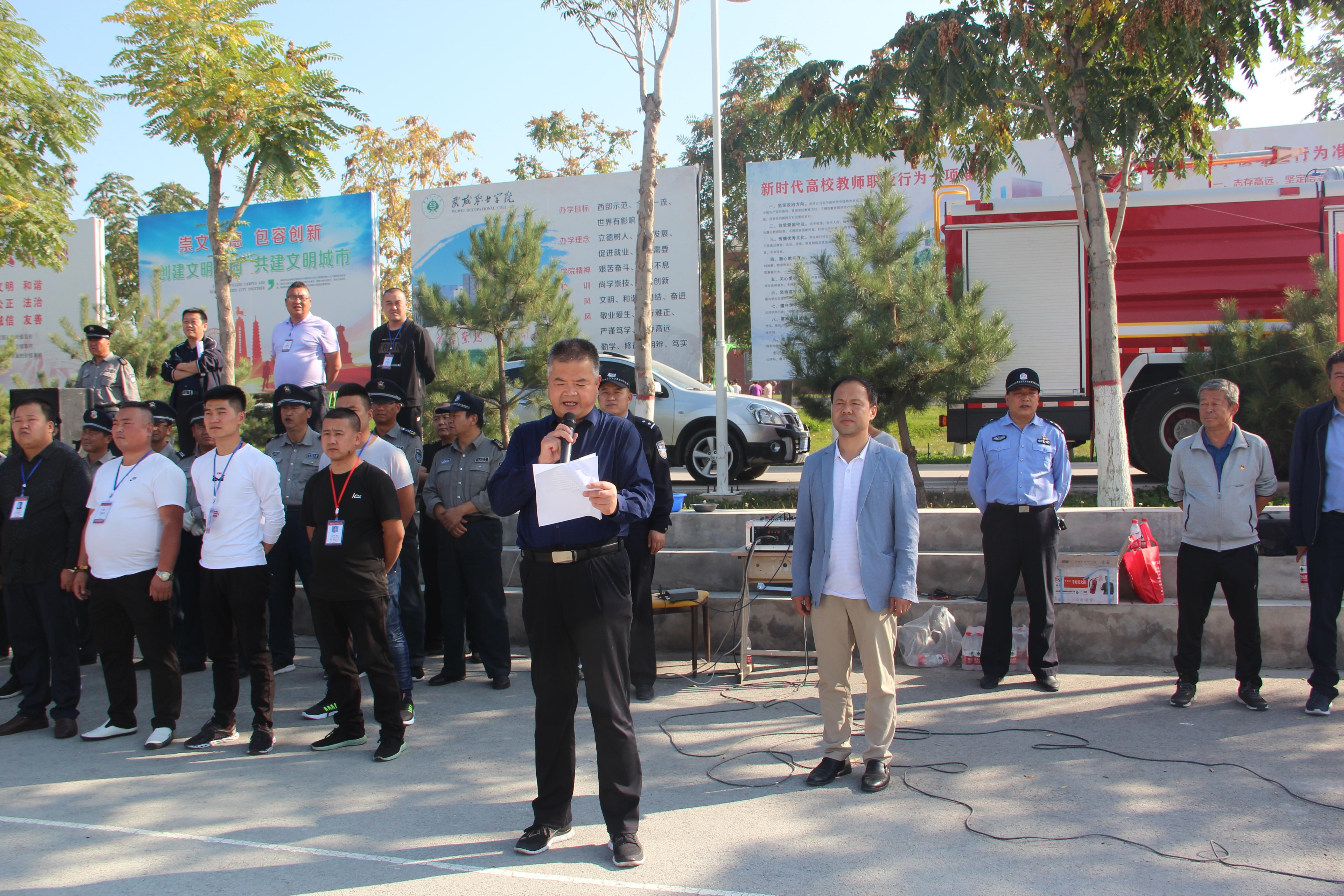 9月25日下午,學(xué)院聯(lián)合武威市消防支隊(duì)舉行了2019年秋季消防應(yīng)急疏散和滅火演練活動。學(xué)院副院長王守云擔(dān)任總指揮,保衛(wèi)處、學(xué)生工作處、各系負(fù)責(zé)同志及轄區(qū)派出所民警、街道社區(qū)工作人員現(xiàn)場觀摩了演練,約4000多名2019級新生及學(xué)生管理工作人員、食堂工作人員參加了演練?。