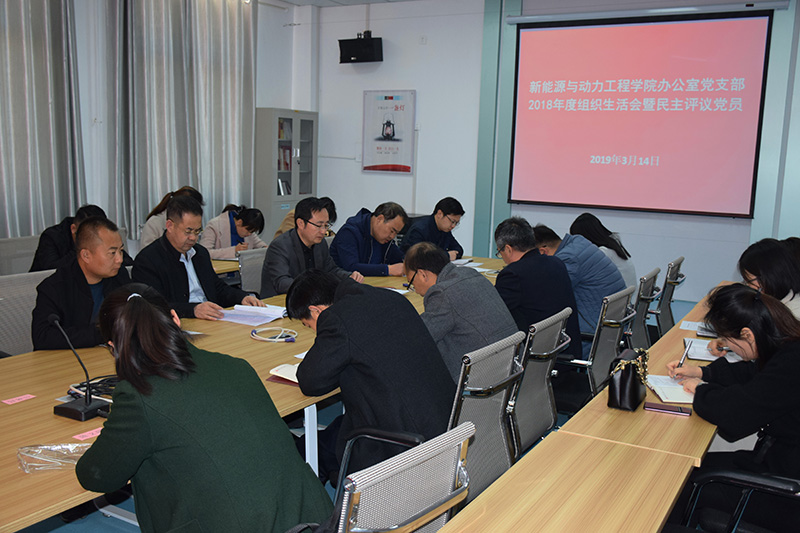 根據(jù)學(xué)院組織人事處《關(guān)于召開(kāi)2018年度基層黨組織組織生活會(huì)和開(kāi)展民主評(píng)議黨員的通知》要求,結(jié)合學(xué)院實(shí)際,新能源與動(dòng)力工程學(xué)院辦公室黨支部于3月14日下午在黨員活動(dòng)室召開(kāi)組織生活會(huì)并開(kāi)展民主評(píng)議黨員活動(dòng)。會(huì)議由黨支部書(shū)記任陶主持,學(xué)院黨委委員、副院長(zhǎng)翟存祥同志以普通黨員身份出席會(huì)議,并對(duì)會(huì)議點(diǎn)評(píng)指導(dǎo)。