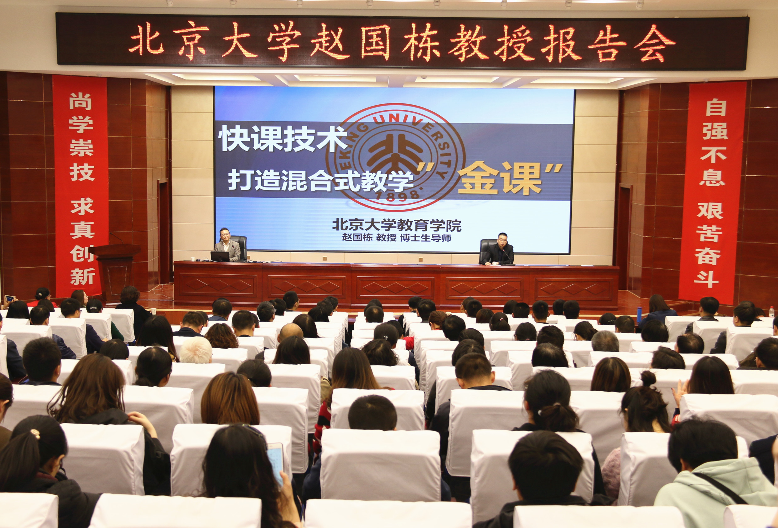 4月15日,北京大學博士生導師,微課技術(shù)實驗室主任,“國際信息研究學會”(IS4IS)中國分會教育信息化專業(yè)委員會副主任, “中國開放式教育資源協(xié)會”(CORE)專家趙國棟教授,應邀到學院作專題報告。 教務處副處長張世亮主持報告會,甘肅冶金職業(yè)技術(shù)學院、甘肅畜牧工程學院、武威職業(yè)教育集團、蘭州交通大學新能源與動力工程學院以及各系教師代表220人聆聽了報告。