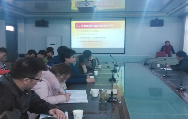 2016年12月27日,汽車工程系黨總支在博學(xué)樓二樓會(huì)議室召開黨的十八屆六中全會(huì)精神宣講報(bào)告會(huì),邀請(qǐng)學(xué)院十八屆六中全會(huì)精神宣講組成員張麗娟副教授作題為《全面從嚴(yán)治黨開啟新征程-十八大六中全會(huì)公報(bào)解讀》的宣講報(bào)告。報(bào)告會(huì)由系黨總支書記邸光才主持,系全體教師及入黨積極分子參加。