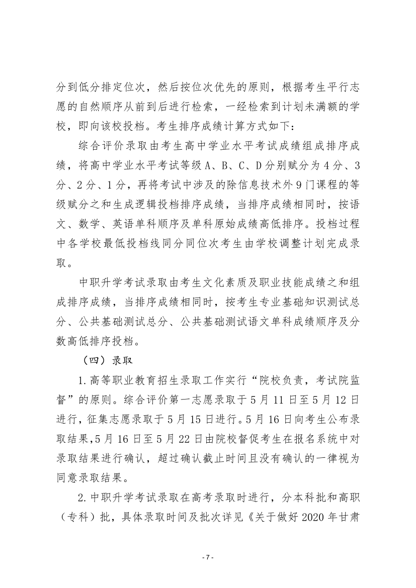 關(guān)于做好2020年甘肅省高等職業(yè)教育考試招生工作…