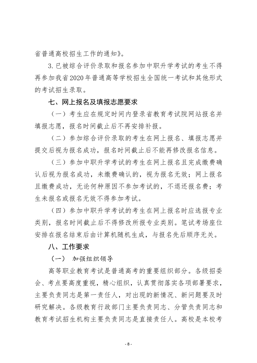 關(guān)于印發(fā)《2020年全省高等職業(yè)教育考試招生工作實(shí)施方案》的通知