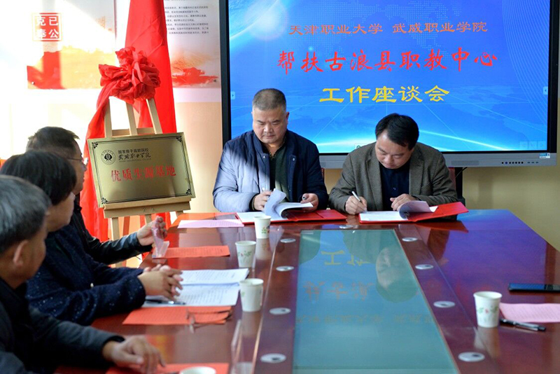 對接會上,趙明為古浪職教中心頒授“優(yōu)質(zhì)生源基地”牌匾,簡要介紹了學(xué)院近年來取得的重要辦學(xué)成果。他表示,學(xué)院今年顯著加強了同古浪職教中心的合作力度,今后還要擴大合作培養(yǎng)專業(yè),全方位深化合作關(guān)系,共同培養(yǎng)職業(yè)技能人才。他強調(diào),通過兩校的合作辦學(xué),我們要取長補短,促進(jìn)中高職貫通培養(yǎng)大力發(fā)展。會上,王守云同古浪職教中心校領(lǐng)導(dǎo)簽署了“2020年中高職貫通培養(yǎng)辦學(xué)合作協(xié)議”。