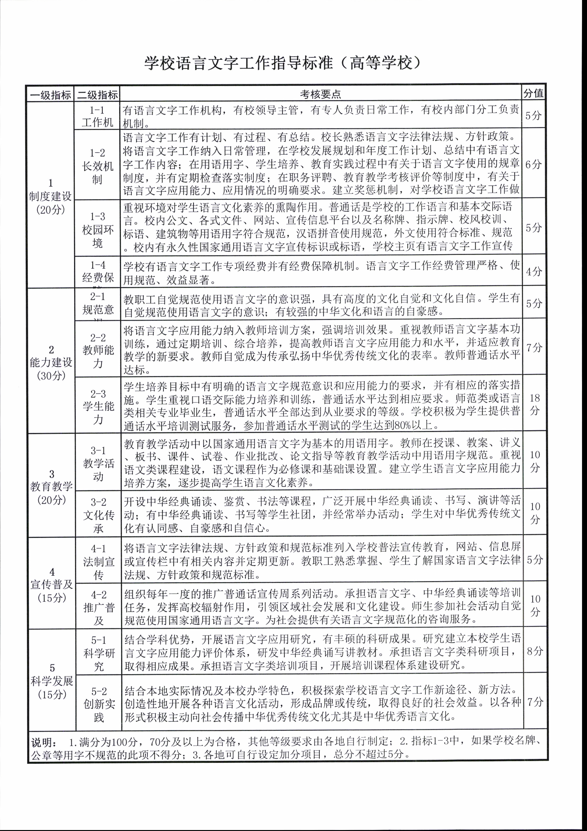 高等學(xué)校語言文字工作指導(dǎo)標(biāo)準(zhǔn)