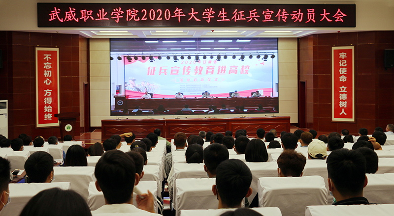6月10日上午,學(xué)院2020年大學(xué)生征兵宣傳動(dòng)員大會(huì)在菁英廳舉行。武威軍分區(qū)司令員張國(guó)輝、武威軍分區(qū)動(dòng)員處處長(zhǎng)劉忠、涼州區(qū)人武部部長(zhǎng)闞延貴、涼州區(qū)人武部政委丁俊強(qiáng),學(xué)院黨委書(shū)記、院長(zhǎng)趙明,副院長(zhǎng)何毅出席會(huì)議。各院系負(fù)責(zé)人、輔導(dǎo)員和學(xué)生代表共200人參加了會(huì)議。會(huì)議由副院長(zhǎng)王守云主持。