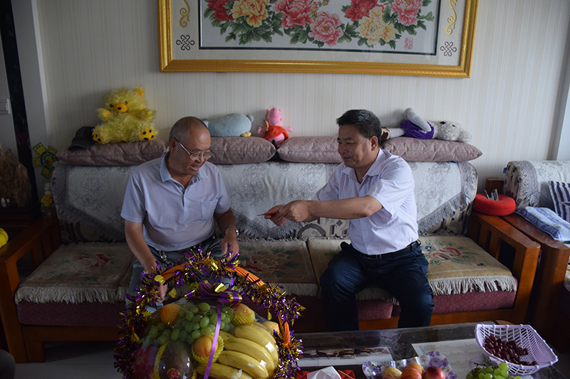 在老黨員鄭希禹家中,黨委書記、院長趙明關切地詢問了他的日常生活、身體狀況、子女工作等情況。感謝他為黨的事業(yè)和學院的發(fā)展做出的貢獻,并叮囑他要照顧好自己的生活,祝愿他身體健康、生活愉快、家庭幸福。