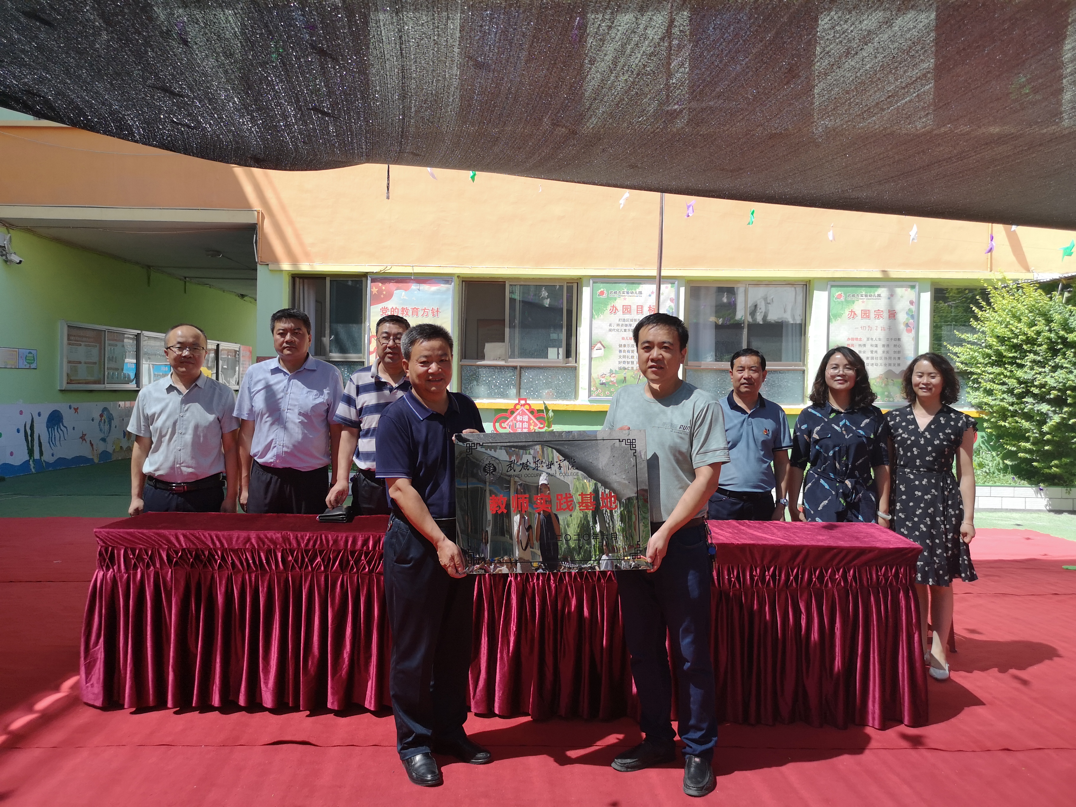 為了加強(qiáng)學(xué)前教育骨干專業(yè)建設(shè),提升學(xué)前教育師資隊(duì)伍素質(zhì),使教學(xué)與幼兒園實(shí)踐緊密結(jié)合,實(shí)現(xiàn)優(yōu)勢(shì)互補(bǔ)共同發(fā)展,7月22日下午,武威職業(yè)學(xué)院分別在武威市實(shí)驗(yàn)幼兒園、涼州區(qū)和平愛(ài)彌兒幼兒園進(jìn)行教師實(shí)踐基地揭牌儀式。