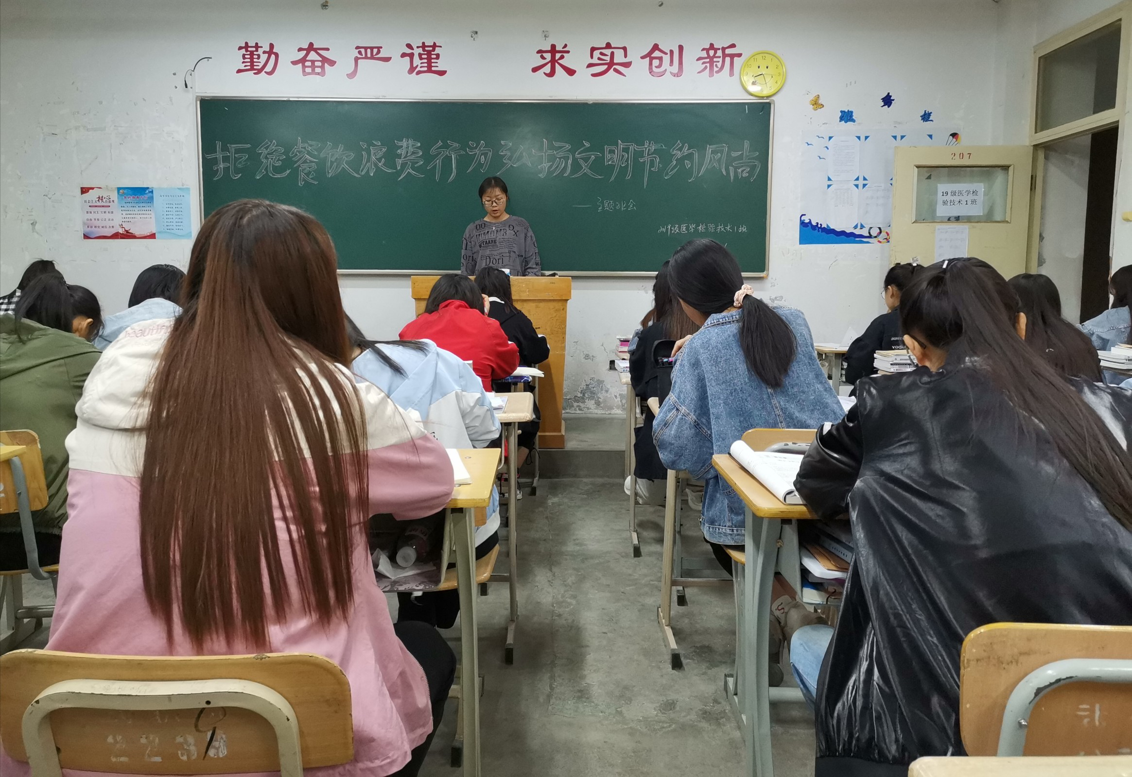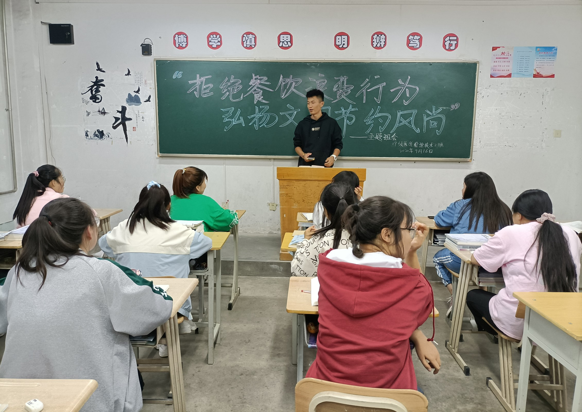 為深入貫徹落實習(xí)近平總書記關(guān)于制止餐飲浪費行為的重要指示精神,確?!肮獗P行動”取得實效,進(jìn)一步引導(dǎo)我系學(xué)生大力弘揚勤儉節(jié)約傳統(tǒng)美德,培養(yǎng)勤儉節(jié)約良好習(xí)慣,全力營造“浪費可恥、節(jié)約光榮”的濃厚氛圍,醫(yī)學(xué)技術(shù)與信息管理系于9月16日各教學(xué)班召開主題班會活動。