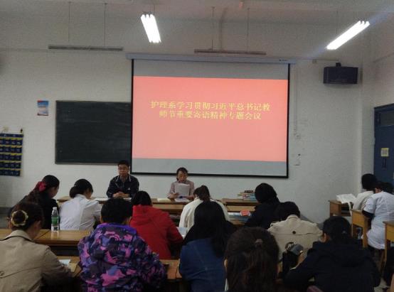 會(huì)上,護(hù)理系主任韓曉萍領(lǐng)學(xué)了《習(xí)近平總書記教育重要論述講義》,重溫了總書記教師節(jié)重要寄語(yǔ)及精神。她指出,全體教職員工要牢記習(xí)近平總書記“不忘立德樹(shù)人初心,牢記為黨育人、為國(guó)育才使命”的責(zé)任擔(dān)當(dāng),積極探索,在教書育人的崗位上不斷作出新的重大貢獻(xiàn)。她要求,每位教職員工撰寫一篇學(xué)習(xí)心得體會(huì),提高認(rèn)識(shí),牢記使命,立足實(shí)際,為黨和國(guó)家培育社會(huì)主義建設(shè)者和接班人。