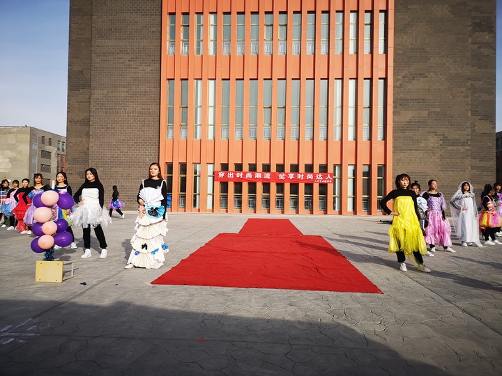 時(shí)裝秀由人文藝術(shù)教育系學(xué)前教育專業(yè)同學(xué)親手制作,再由同學(xué)們身著舊窗簾裁剪的長尾裙、廢撲克牌制作的“國王”套裝、廣告紙變身的鎧甲、塑料袋制成的披風(fēng)等等,跟著音樂的節(jié)奏,走起了“貓步”。通過這項(xiàng)活動(dòng)使同學(xué)們要保護(hù)環(huán)境,節(jié)約糧食,倡導(dǎo)全體同學(xué)樹立環(huán)保意識和節(jié)約意識,希望環(huán)保理念能夠扎根于同學(xué)們的心中。