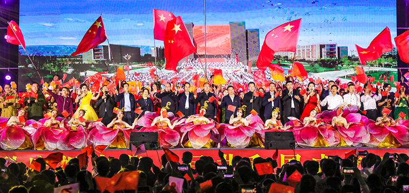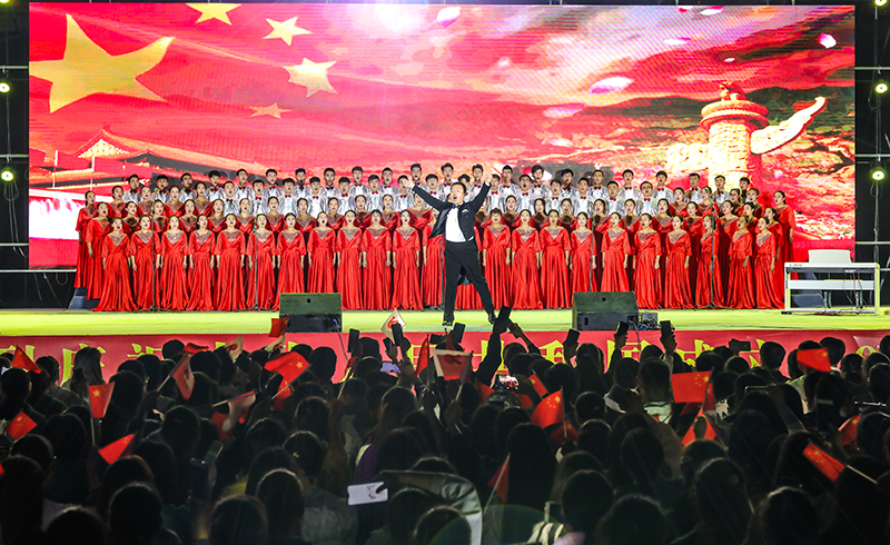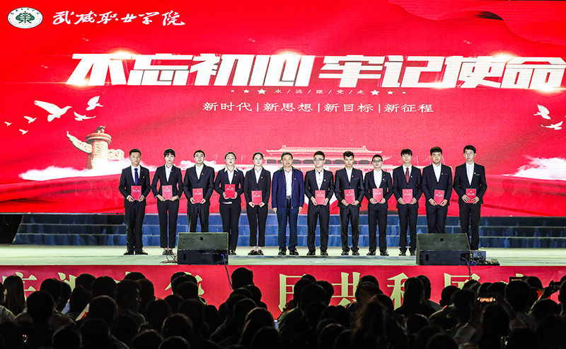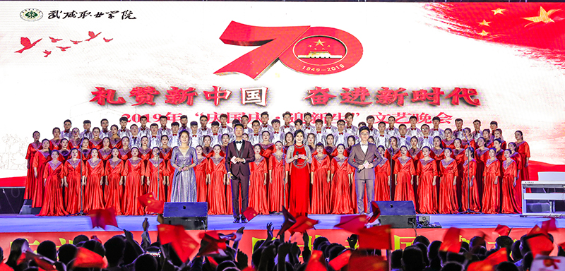 9月29日,武威職業(yè)學(xué)院舉行2019“禮贊新中國 奮進(jìn)新時(shí)代 ”慶國慶迎新生文藝晚會(huì),以精品文藝節(jié)目匯報(bào)演出的形式慶祝新中國成立70周年,推動(dòng)“不忘初心、牢記使命”主題教育落地生根,入腦入心。