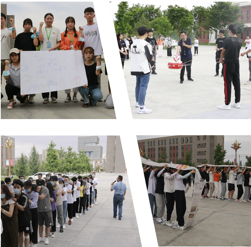 6月19日、6月20日下午在大學(xué)生活動中心前廣場開展“釋放壓力、放飛心靈”素質(zhì)拓展活動。活動包括破冰、團隊建設(shè)、風(fēng)火輪大PK、同心協(xié)力創(chuàng)輝煌(鼓動人心)、分享五個環(huán)節(jié)。