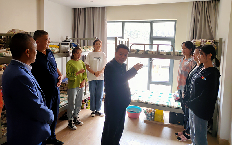 掛牌儀式后,趙明一行調(diào)研了景區(qū)建設(shè)情況,看望了即將開始實(shí)習(xí)實(shí)訓(xùn)的學(xué)生,詳細(xì)了解了學(xué)生實(shí)訓(xùn)期間疫情防控管理措施、安全、上課情況、住宿以及飲食等方面。