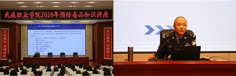 為進(jìn)一步加強(qiáng)學(xué)院毒品預(yù)防教育工作,不斷提高學(xué)生識(shí)毒、防毒、拒毒意識(shí),2020年11月6日下午,學(xué)院團(tuán)委邀請(qǐng)武威市公安局禁毒支隊(duì)政委、市禁毒辦副主任杜興林在菁英廳作了題為“健康人生 綠色無毒”預(yù)防毒品專題知識(shí)講座,師生代表共200余人聆聽講座。