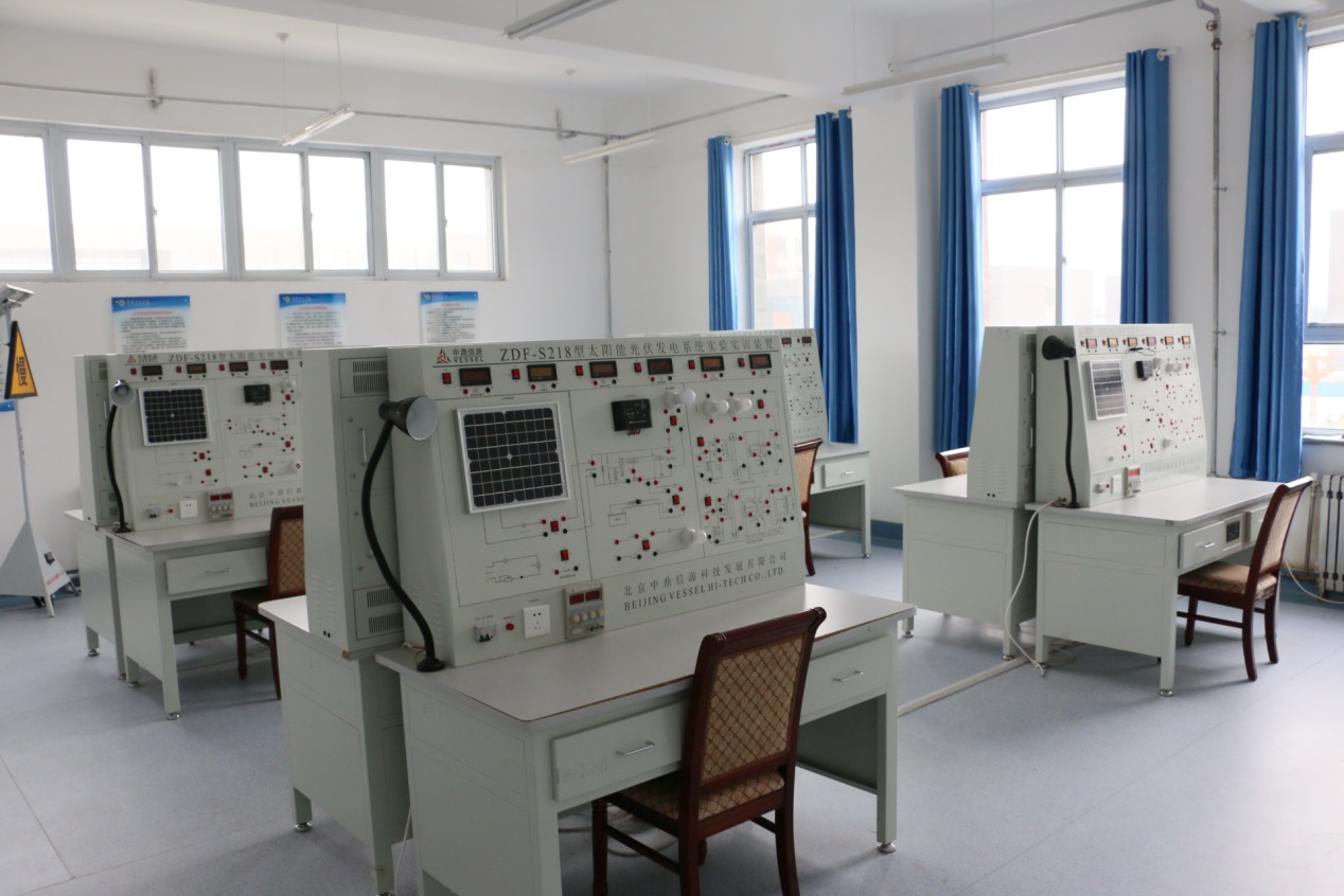 實(shí)訓(xùn)功能:本實(shí)訓(xùn)室擁有太陽(yáng)能光伏發(fā)電系統(tǒng)實(shí)驗(yàn)裝置8套。主要服務(wù)課程為光伏發(fā)電技術(shù)分析與應(yīng)用、光伏材料的加工與檢測(cè)等。
