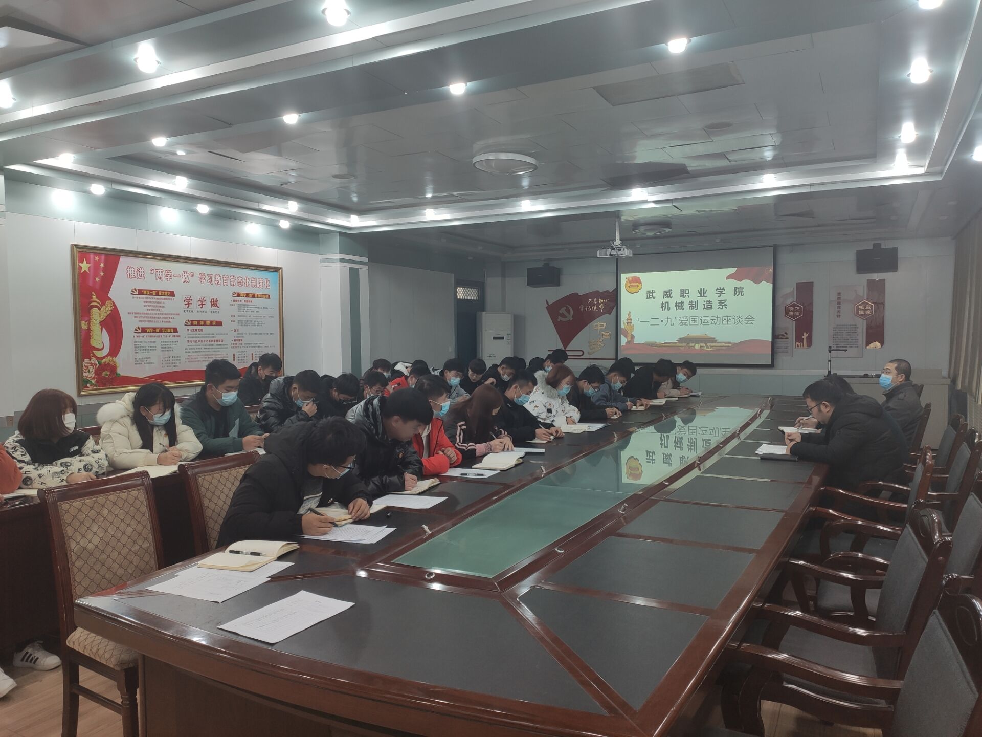 為了紀念“一二·九”愛國運動,我系于2020年12月9日,在博學樓二樓黨員活動室召開了武威職業(yè)學院機械制造系“一二·九”愛國運動座談會,參會人員有大二團學委員會全體成員以及18級、19級、20級各班團支書。