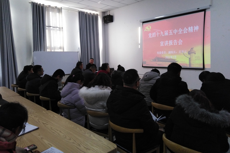 黨委委員、副院長王守云為教學(xué)管理第一、第二黨支部宣講黨的十九屆五中全會(huì)精神