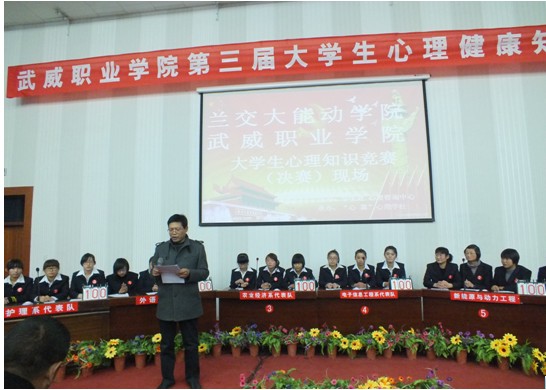 此次比賽歷時一個月,分為初賽和決賽兩部分。全院13個系和蘭交大能動學(xué)院代表隊(duì)參加了初賽的角逐,最終蘭交大能動學(xué)院、電子信息工程系、護(hù)理系、藥學(xué)系、外語系、農(nóng)經(jīng)系六支代表隊(duì)進(jìn)入決賽。競賽分必答題、搶答題、風(fēng)險題、觀眾互動四個環(huán)節(jié),內(nèi)容涉及心理理論知識、心理保健常識、心理科普知識等,融趣味性、教育性、普及性于一體。在比賽開始之前,各參賽隊(duì)一一向大家作了別出心裁的介紹,并喊出自己隊(duì)的參賽口號。比賽中,臺上選手們“八仙過海,各顯其能”,展現(xiàn)了他們雄厚的實(shí)力,隊(duì)員踴躍發(fā)言,積極搶答,臺下親友團(tuán)搖旗吶喊,為選手加油,高潮迭起。現(xiàn)場始終洋溢著緊張、熱烈、和諧的氣氛。最終,護(hù)理系代表隊(duì)以他們精彩出色的表現(xiàn)奪得一等獎,能動學(xué)院代表隊(duì)、外語系代表隊(duì)獲得二等獎,藥學(xué)系、電信系、農(nóng)經(jīng)系代表隊(duì)獲得三等獎。