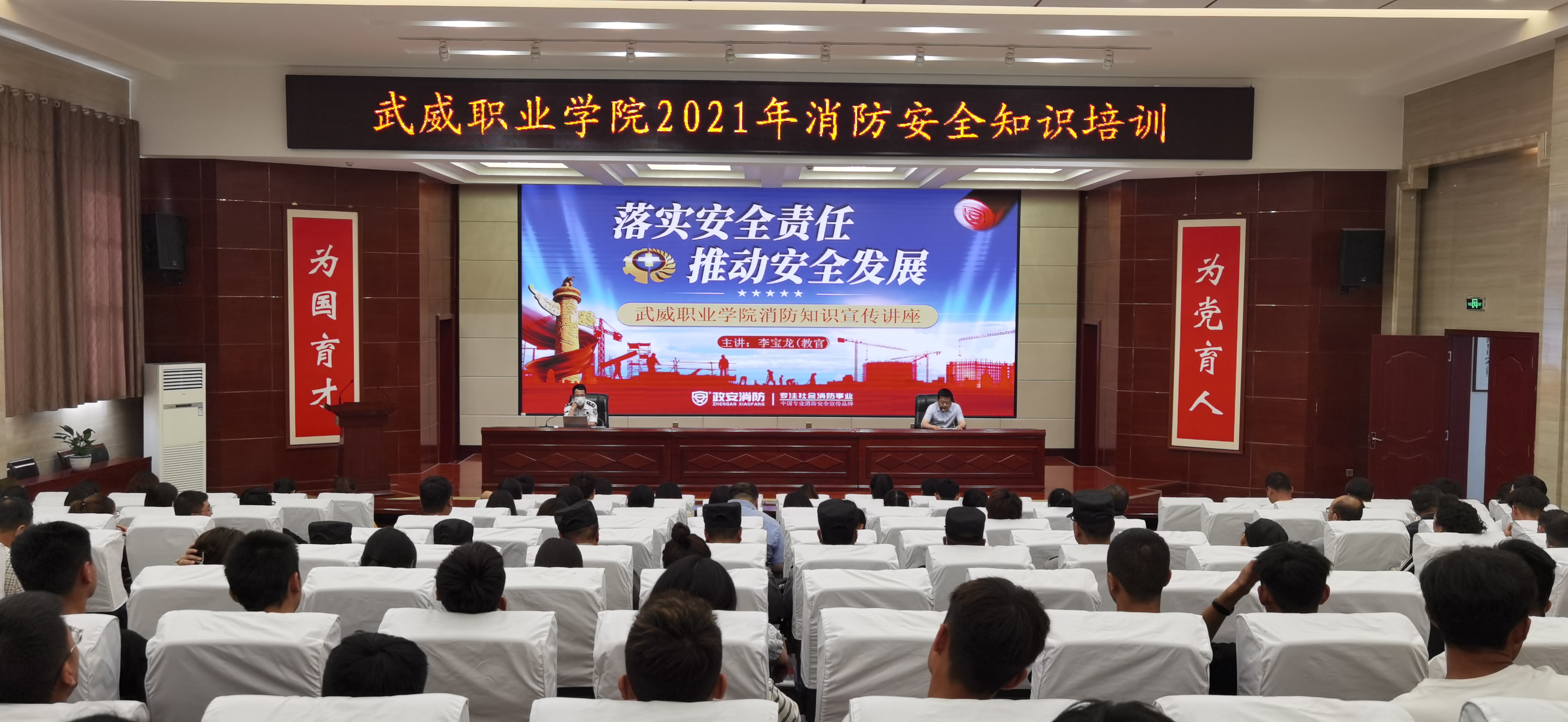6月21日下午,學院在菁英廳舉辦了“安全生產(chǎn)月”消防安全知識培訓(xùn)。蘭州政安消防教官李寶龍應(yīng)邀作了“落實安全責任,推動安全發(fā)展”專題講座。學院各部門、教學院系安全信息員、實驗室管理員、近三年新入職教師及學院重點崗位工作人員、團學干部220余人參加了培訓(xùn)。
