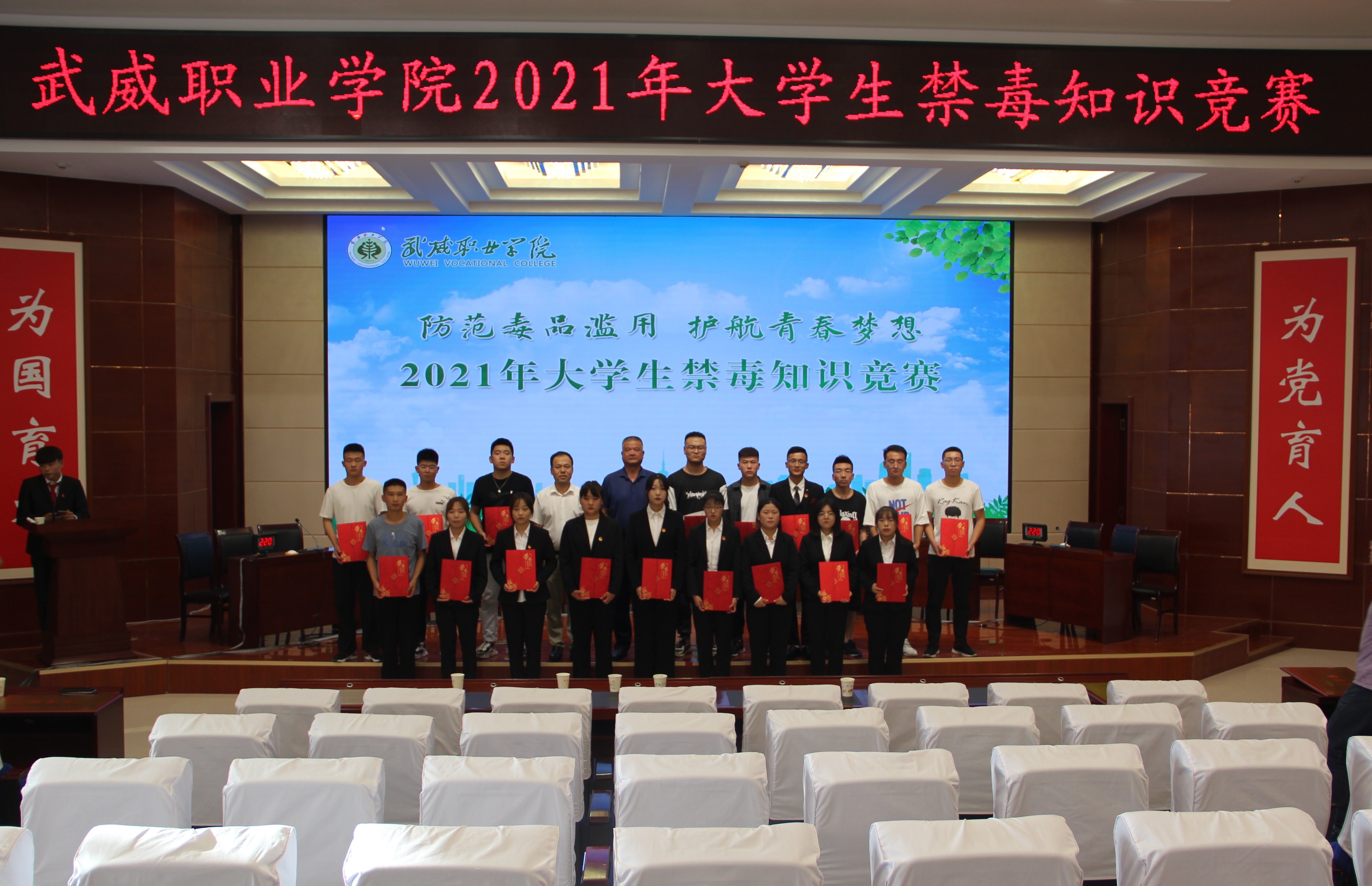 為加強(qiáng)在校大學(xué)生禁毒知識(shí)普及教育,深入推進(jìn)青少年毒品預(yù)防教育“6.27”工程,7月5日下午,學(xué)院在菁英廳舉辦以“防范毒品濫用,護(hù)航青春夢(mèng)想”為主題的2021年大學(xué)生禁毒知識(shí)競(jìng)賽決賽。學(xué)院黨委委員、副院長(zhǎng)王守云出席活動(dòng)。各教學(xué)院系200多名師生觀看了比賽。